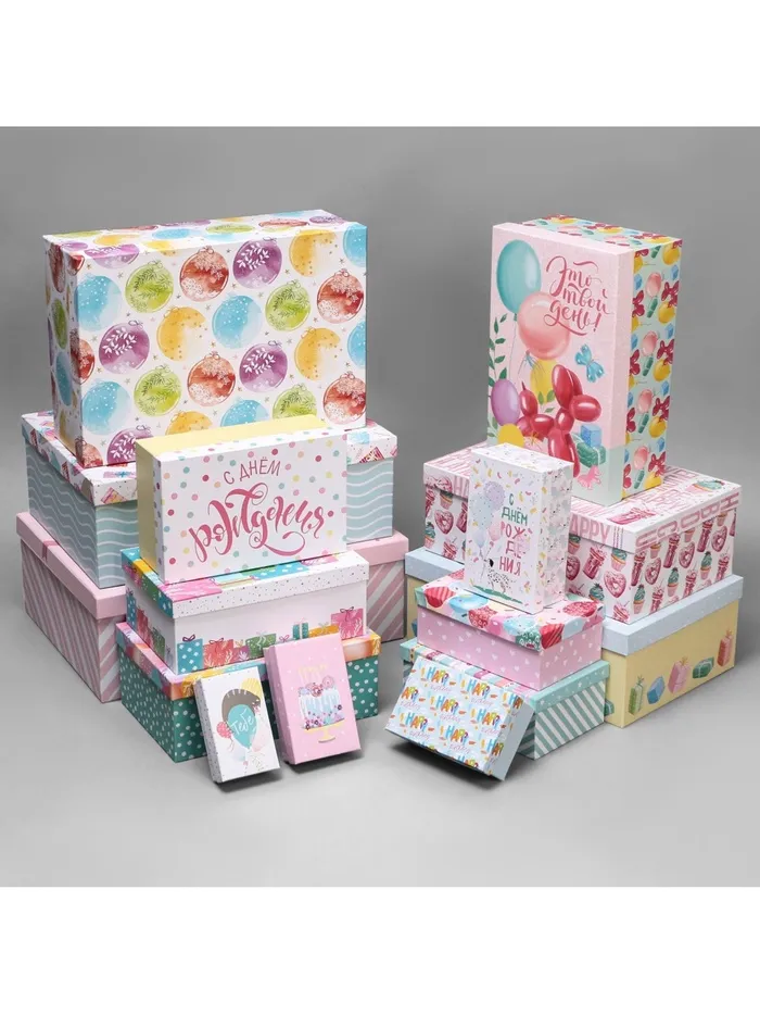 Набор коробок 15 в 1, упаковка подарочная, «С днём рождения», 12 х 7 х 4 см - 46.5 х 30 х 17.5 см — Характеристики