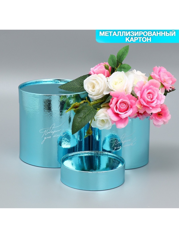 Набор коробок 2 в 1 круглые, упаковка подарочная, «Подарок для тебя», голубой металлик, 12 х 12, 15 х 15 см — Характеристики