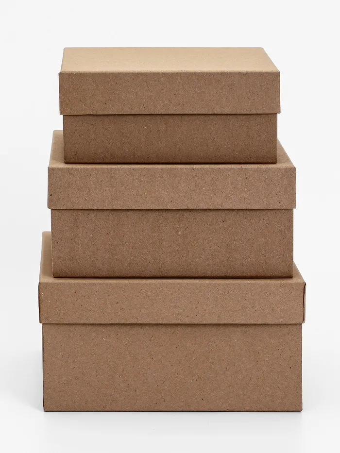 Минимализм и практичность в каждой детали! Набор крафт-коробок 3 в 1 (19×17.5×15.5 см) — это три квадратные коробки из плотного коричневого картона. Универсальное решение для упаковки подарков или систематизации вещей в интерьере.