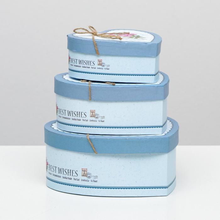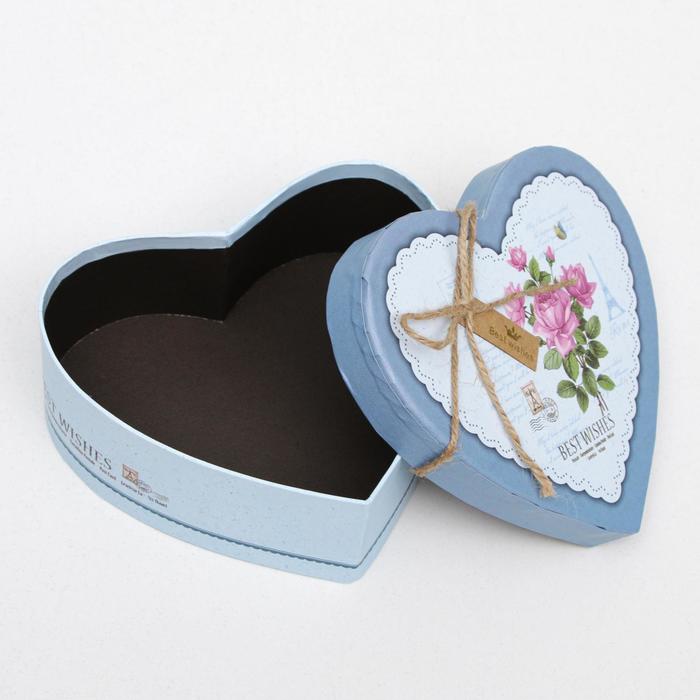 Набор коробок 3 в 1 сердца "Розы" голубой, 21 х 19 х 9 - 15.5 х 14 х 6 см — Характеристики