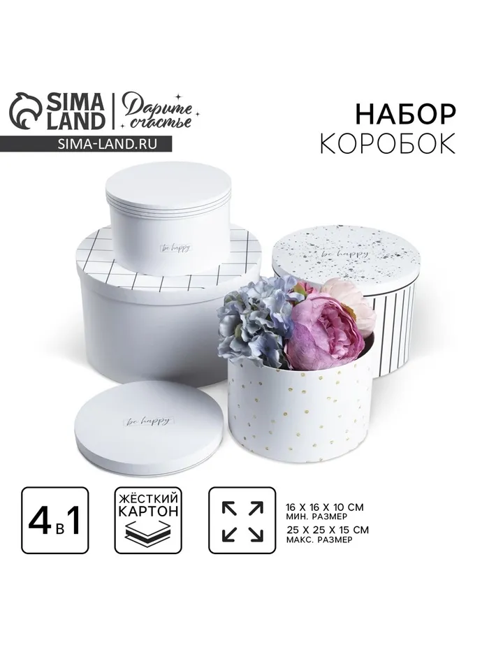 Набор коробок 4 в 1, упаковка подарочная, «Be happy», 16 х 16 х 10 - 25 х 25 х 15 см — Характеристики