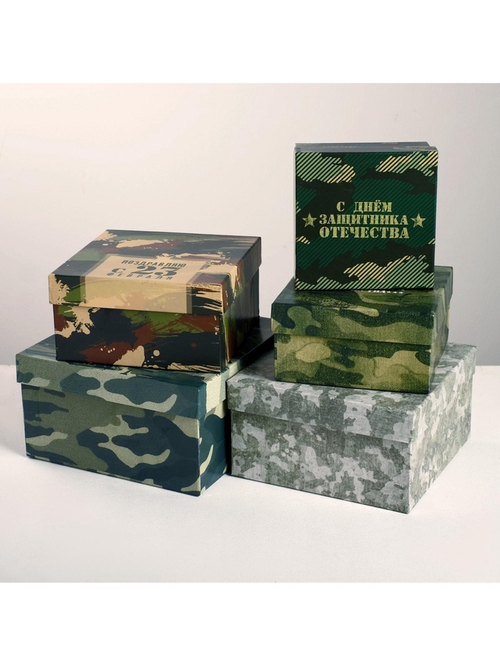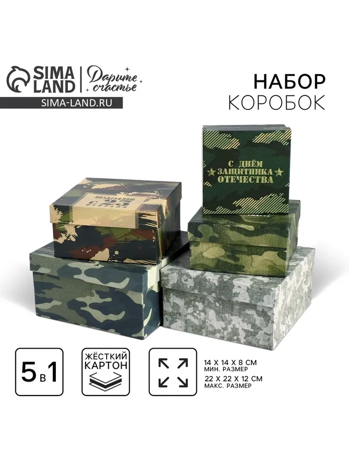 Набор коробок 5 в 1, упаковка подарочная, «С 23 февраля», 14 х 14 х 8 - 22 х 22 х 12 см — Характеристики