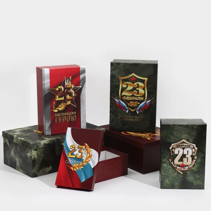 Набор коробок 6 в 1, упаковка подарочная, «С 23 февраля», 20 х 12.5 х 7.5 ‒ 32.5 х 20 х 12.5 см — Характеристики
