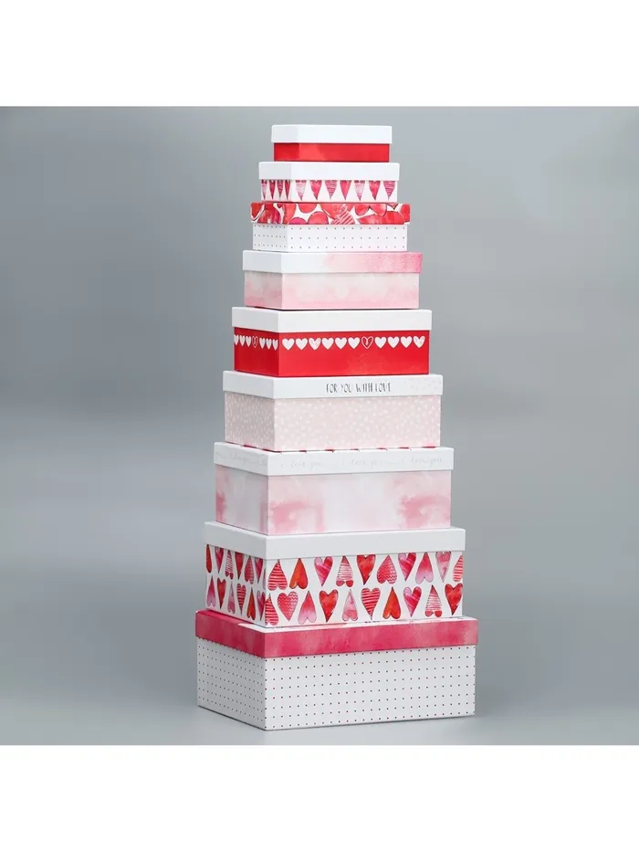 Набор коробок 9 в 1, упаковка подарочная, «Ты в моём сердце», 12 х 7 х 4 - 28 х 18.5 х 11.5 см — Характеристики