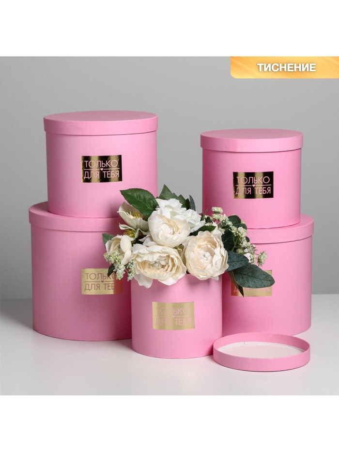 Набор коробок для цветов 5 в 1, упаковка подарочная, «Нежность», 14 х 14 х 13 см - 22 х 22 х 19.5 см