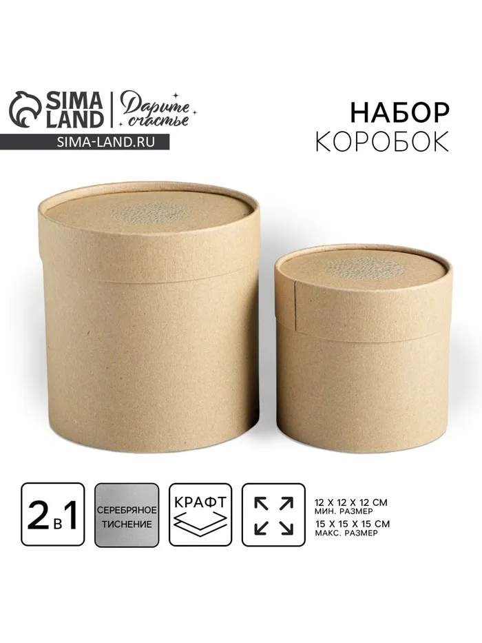 Набор коробок из крафта 2 в 1, упаковка подарочная, «Тебе», 12 х 12 х 12, 15 х 15 х 15 см — Характеристики