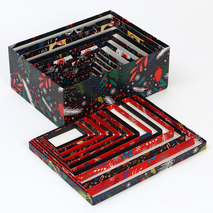 Набор коробок подарочных 15 в 1 «Европейский», 12 х 7 х 4 см - 46,6 х 35,2 х 17.5 см, Новый год — Характеристики