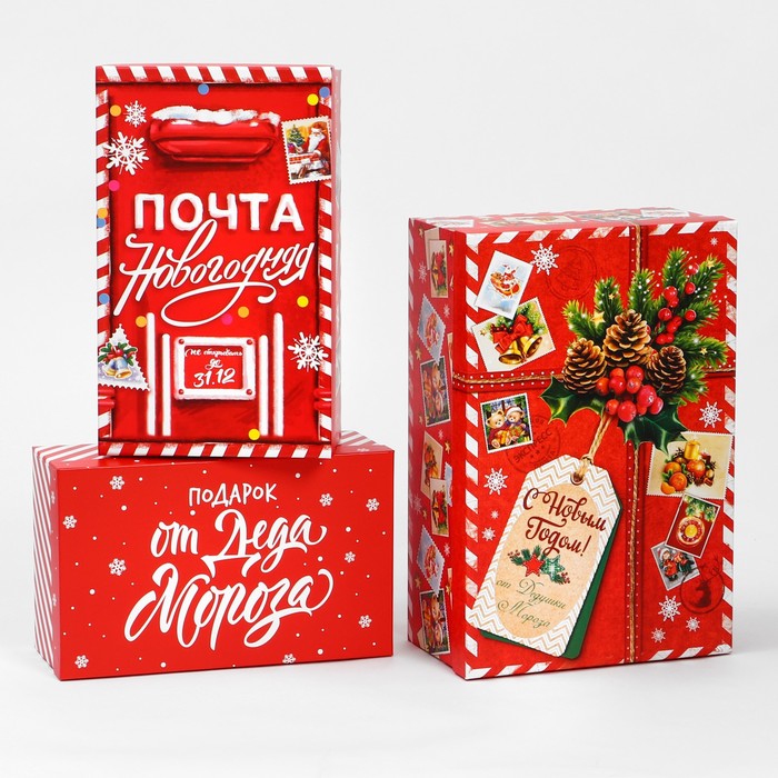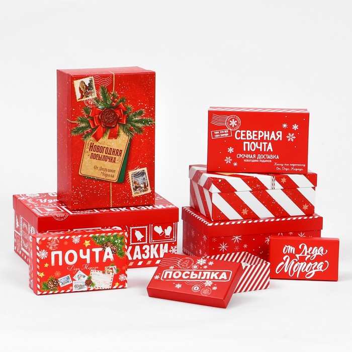 Набор коробок подарочных 15 в 1 «Почта», 12 х 7 х 4 см - 46,6 х 35,2 х 17.5 см, Новый год — Характеристики