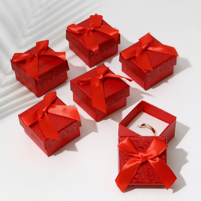 Набор короборчек подарочных под кольцо «Блестящие сердца», 6 шт. 5×5 см, красный — Характеристики