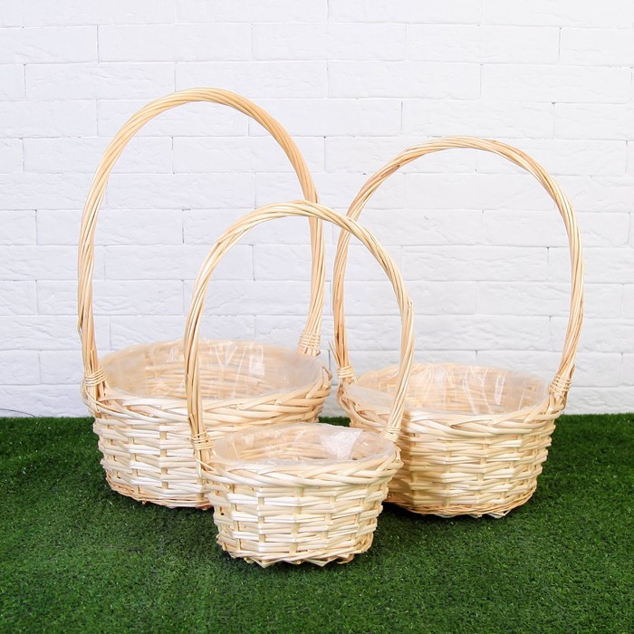 Набор корзин «Плетёнка», 3 шт., 28×14/45 - 24×13/41 -19×11/37 см, ива натуральная — Характеристики