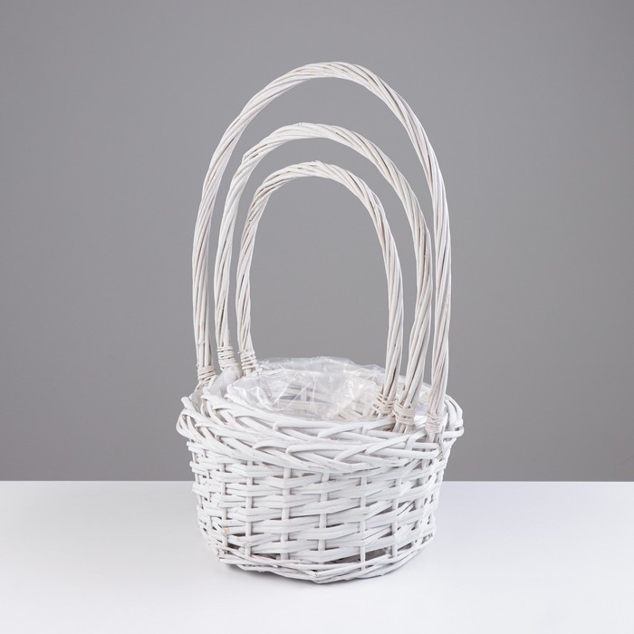 Набор корзин «Плетёнка», белый, 3 шт., 28×14/45 см, 24×13/41 см, 19×11/37 см, ива — Характеристики