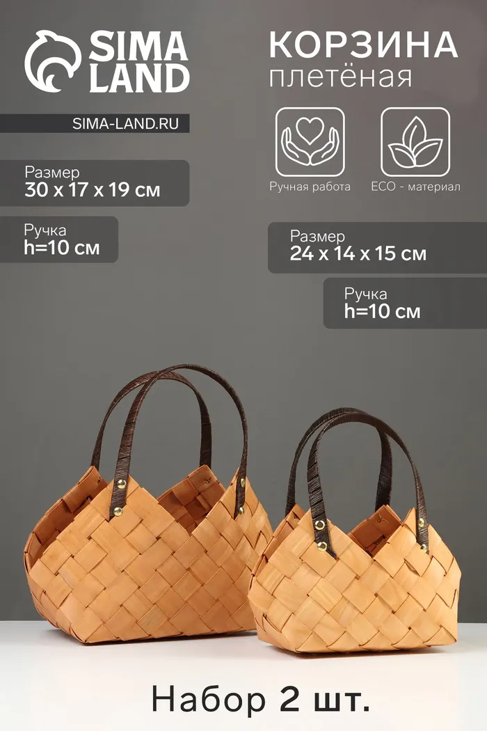 Набор корзин плетёных, 2 шт., 30×17×19 см, 24×14×15 см, ива, натуральный цвет — Характеристики