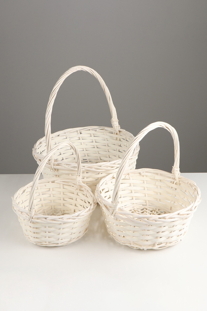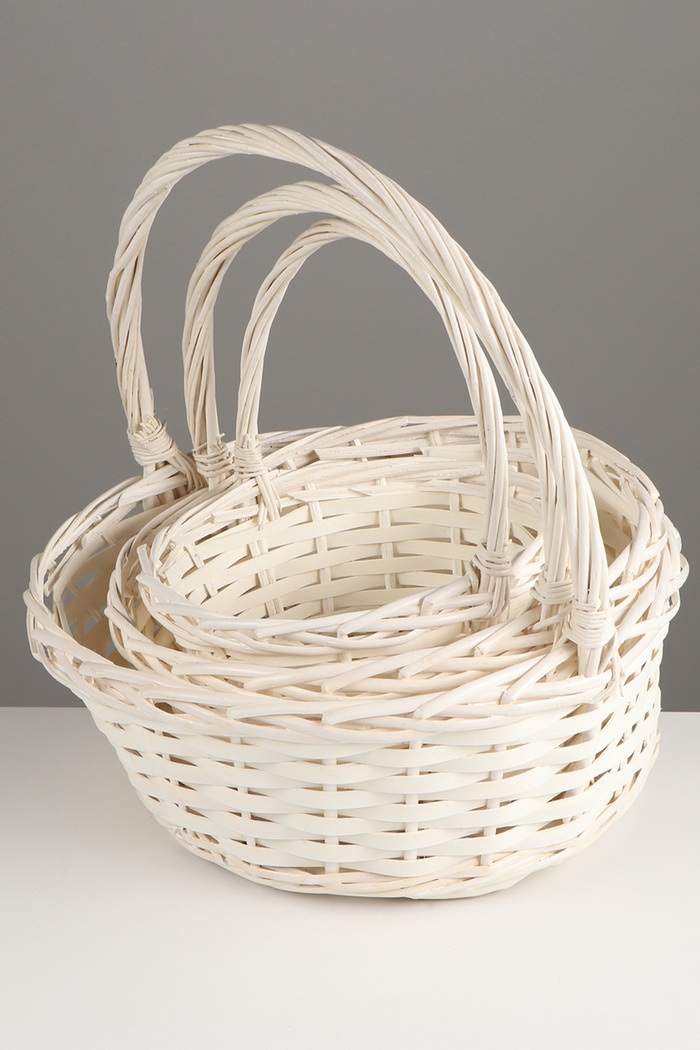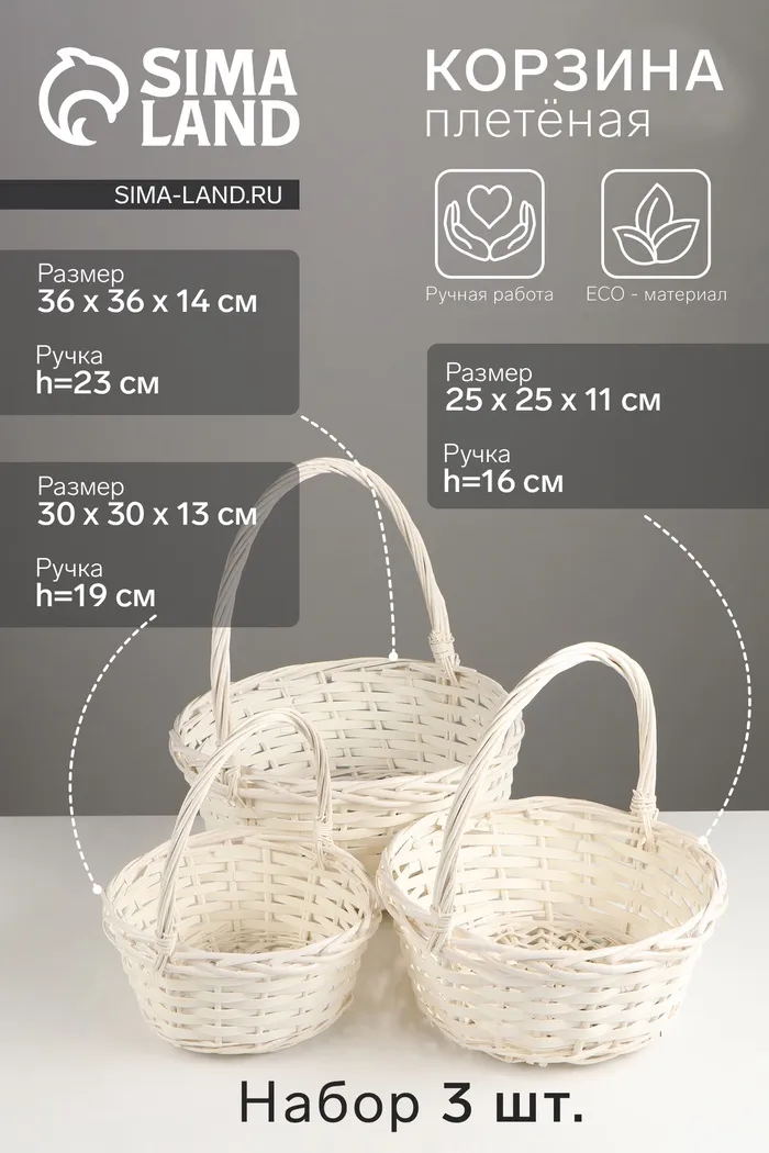 Набор корзин плетёных, 3 шт., 36×36×14 см, 30×30×13 см, 25×25×11 см, ива, белая — Характеристики