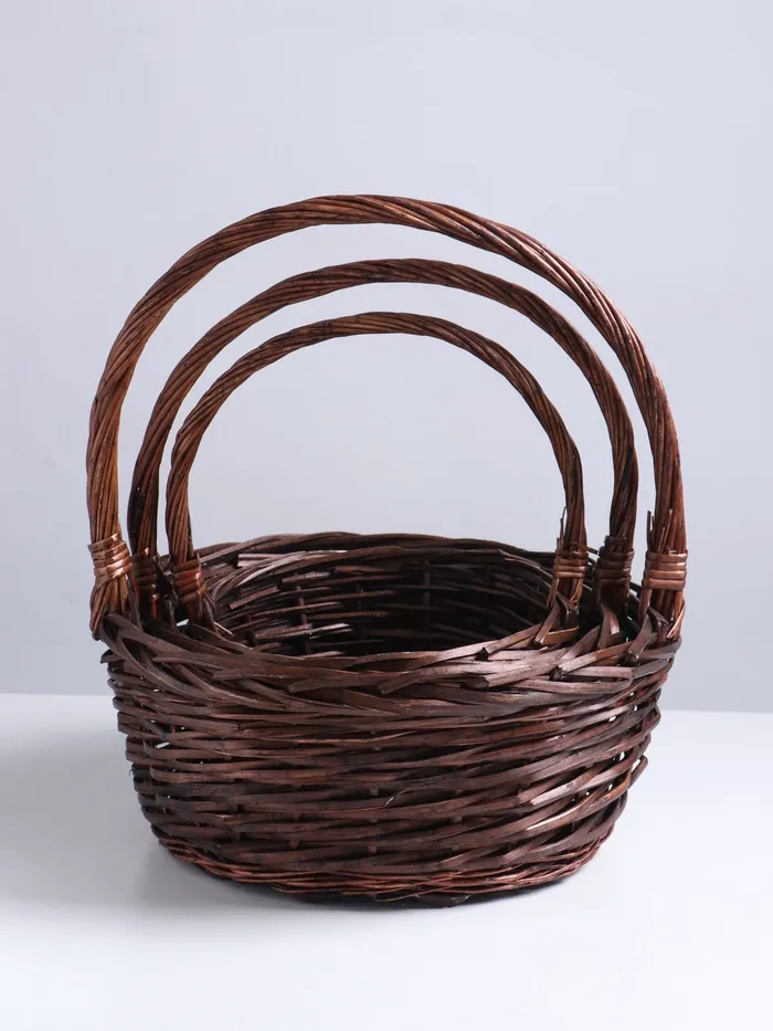 Каждая корзина выполнена из высококачественной ивы, что гарантирует их прочность и долговечность. Размеры корзин (38×16×40, 32×13×35 и 26×12×30 см) продуманы так, чтобы удовлетворить разнообразные потребности: от хранения крупных предметов до компактных аксессуаров. Удобные ручки и оптимальная высота с учётом ручек (40, 35 и 30 см) обеспечивают комфорт при переноске, а их круглая форма позволяет эффективно использовать внутреннее пространство.