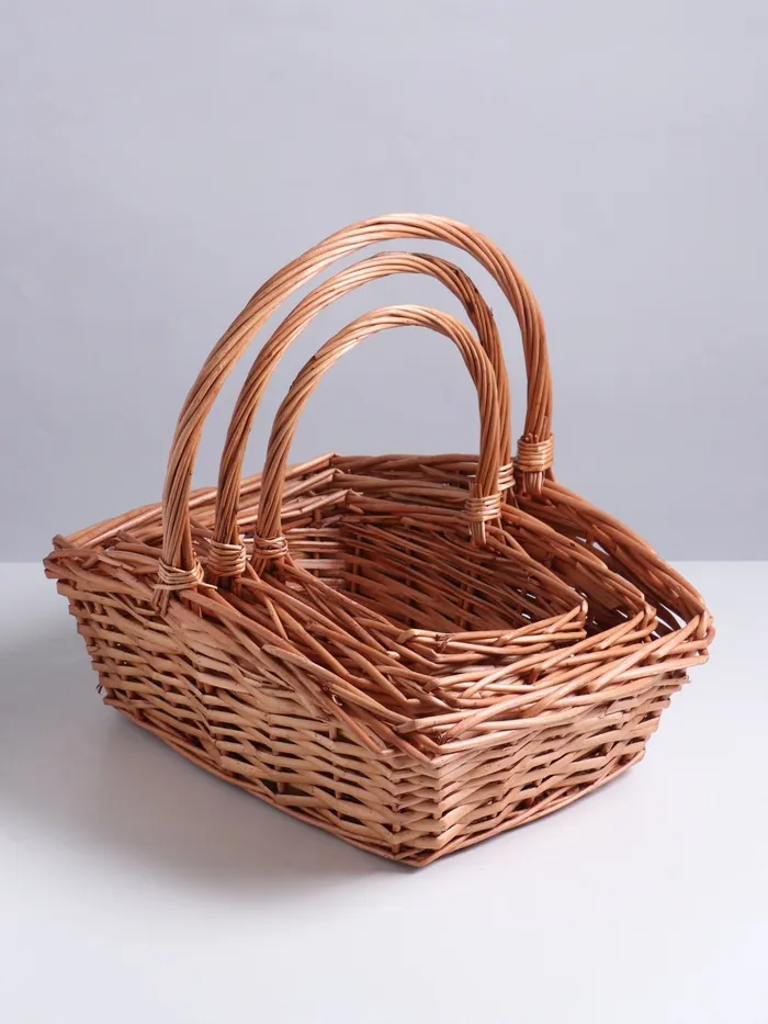 Каждая корзина выполнена из высококачественной ивы, что гарантирует их прочность и долговечность. Размеры корзин (39×28×12×17, 33×23×12×16 и 26×18×10×13 см) продуманы так, чтобы удовлетворить разнообразные потребности: от хранения крупных предметов до компактных аксессуаров. .