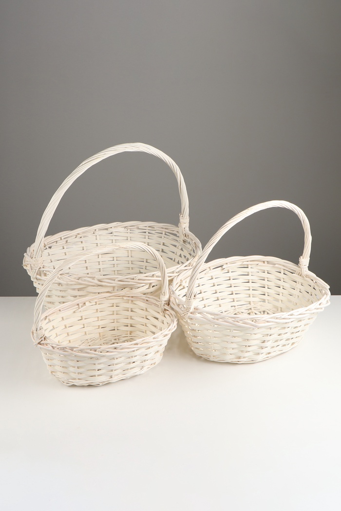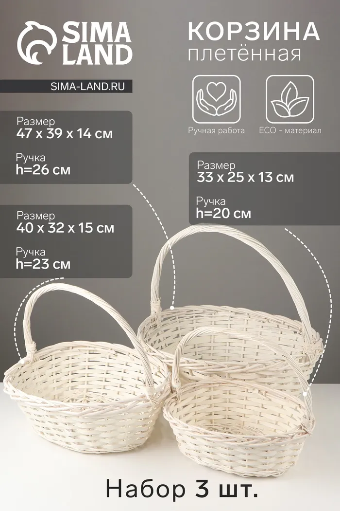 Набор корзин плетёных, 3 шт., 47×39×14 см, 40×32×15 см, 33×25×13 см, ива, белый — Характеристики