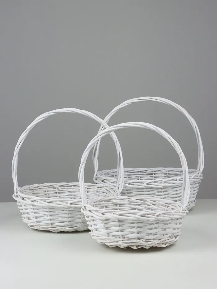 Овальные плетёные корзины — это изящное дополнение к вашему интерьеру, способное придать любому пространству атмосферу уюта и гармонии. Эти корзины белого цвета изготовлены из натуральной ивы и предлагаются в комплекте из трёх штук, что позволяет решать разнообразные задачи по хранению.