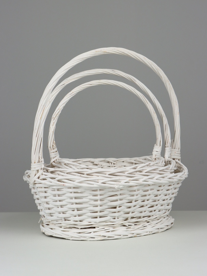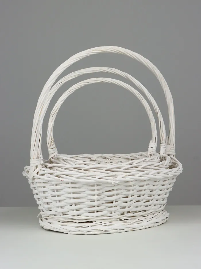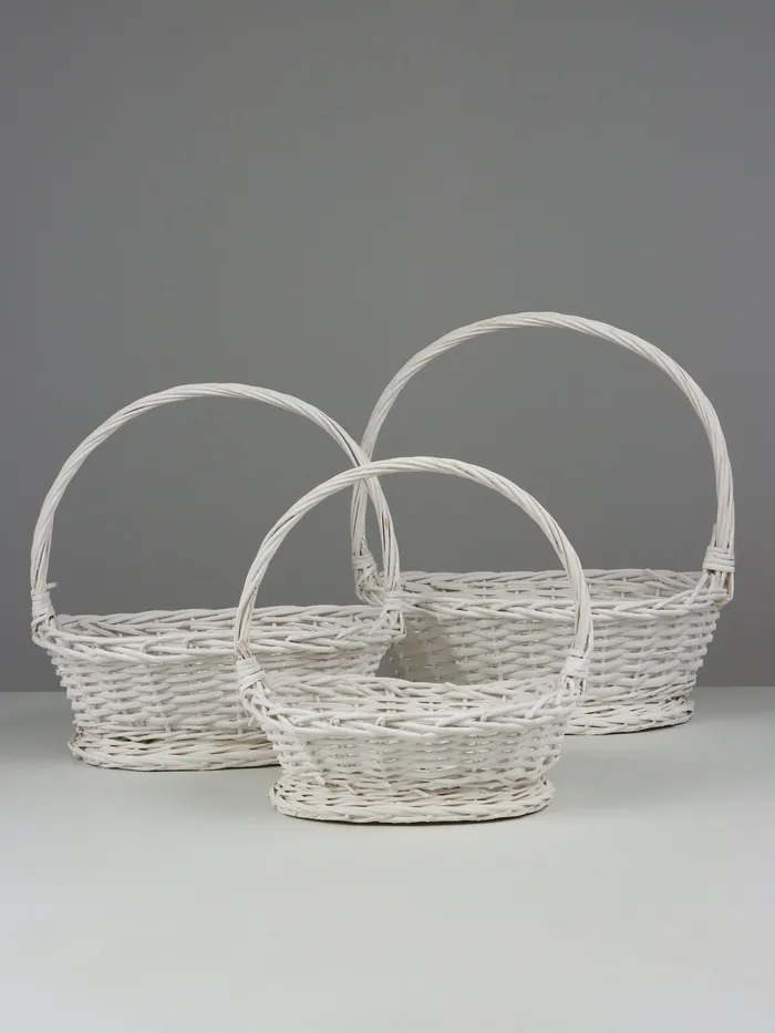 Произведите впечатление с набором из трех стильных плетёных корзин. Эти изящные изделия из ивового лозовья идеальны для украшения вашего интерьера и упрощают организацию пространства. Белоснежный цвет и овальная форма корзин создают гармоничное сочетание натурального материала и современного дизайна, подходящего для любого дома.