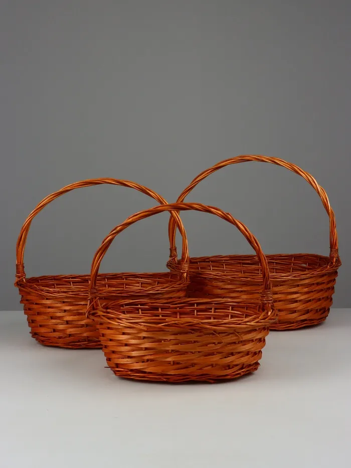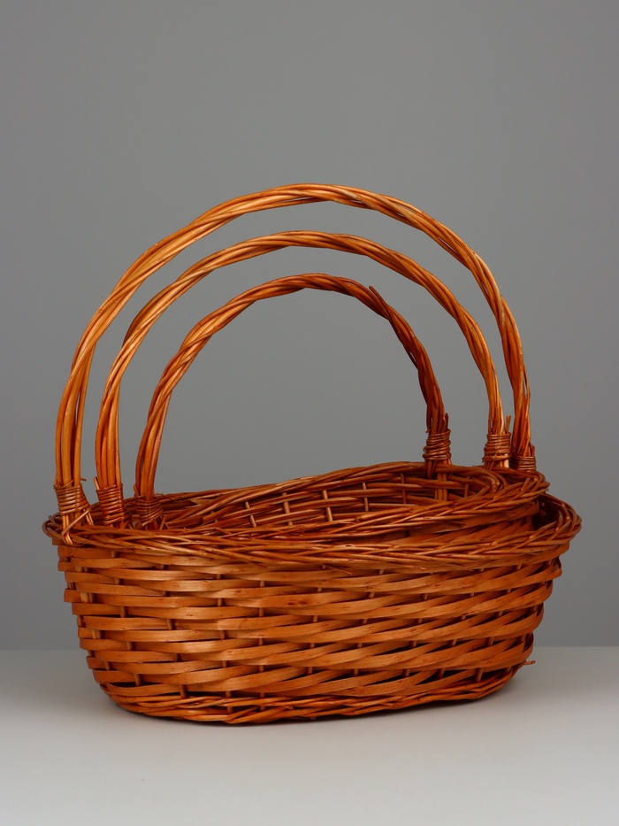 Овальные плетёные корзины — идеальное решение для любителей эстетики и натуральных материалов. Этот комплект из трех изделий предлагает разнообразие размеров для самых различных нужд. Изготовленные из прочной ивы, они придают вашему интерьеру уют и гармонию, прекрасно подходя для хранения самых разных вещей.
