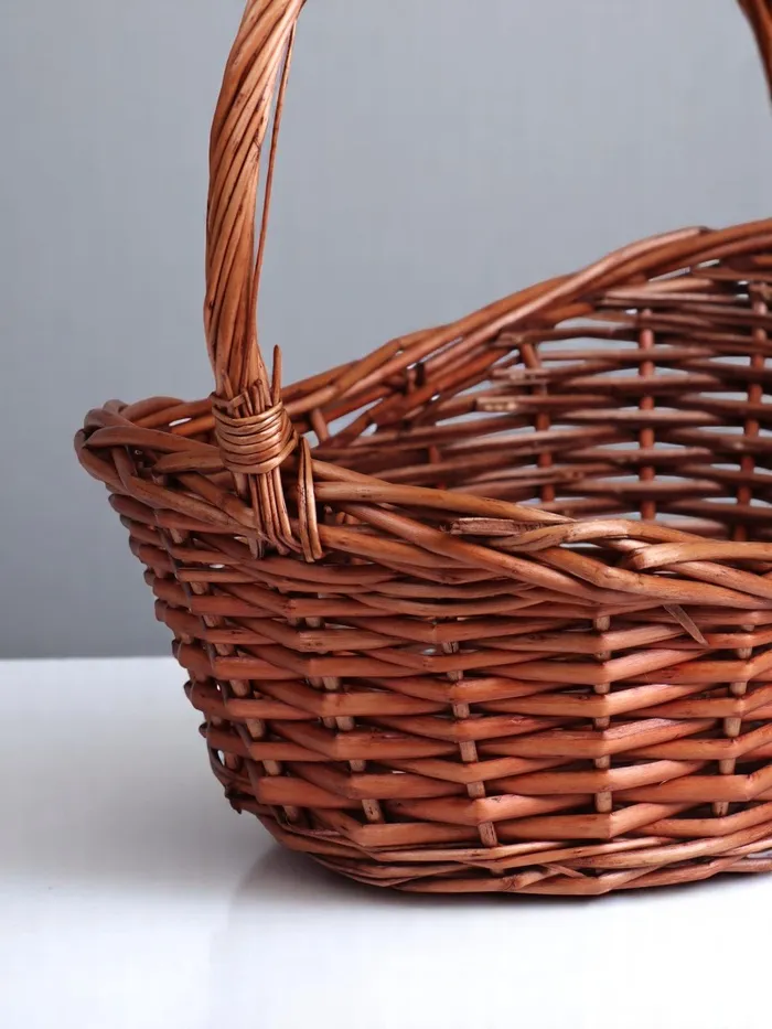 - Надёжность в деталях: прочное плетение из лозы выдерживает существенные нагрузки, а эргономичные ручки не врезаются в ладони при переноске.