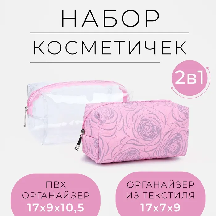 Набор косметичек 2 в 1 на молнии, цвет розовый — Характеристики