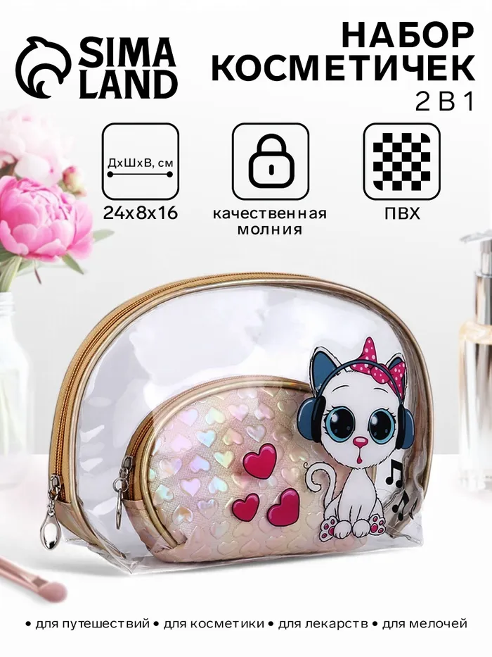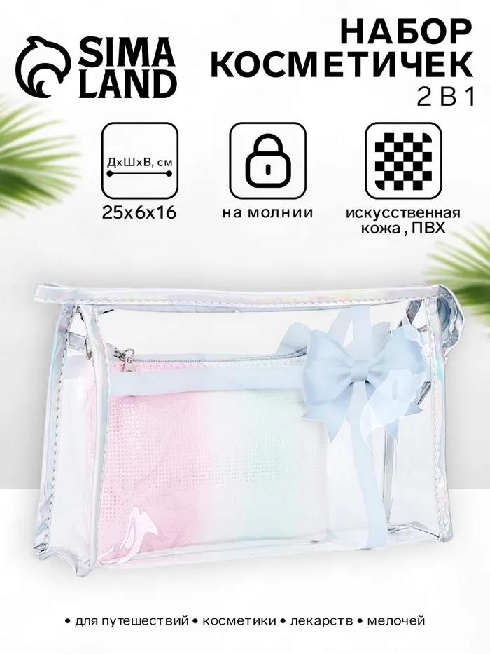 Набор косметичек для бассейна 2 в 1, с рисунком, розовый/разноцветный — Характеристики