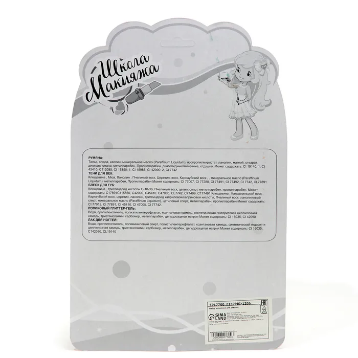 Детская косметика позволит ребёнку устраивать эксперименты со своим стилем. Набор поможет девочке подобрать оптимальные варианты для вечерних и дневных образов. Косметика без труда смывается водой или с помощью ватного диска и безопасна для детской кожи.