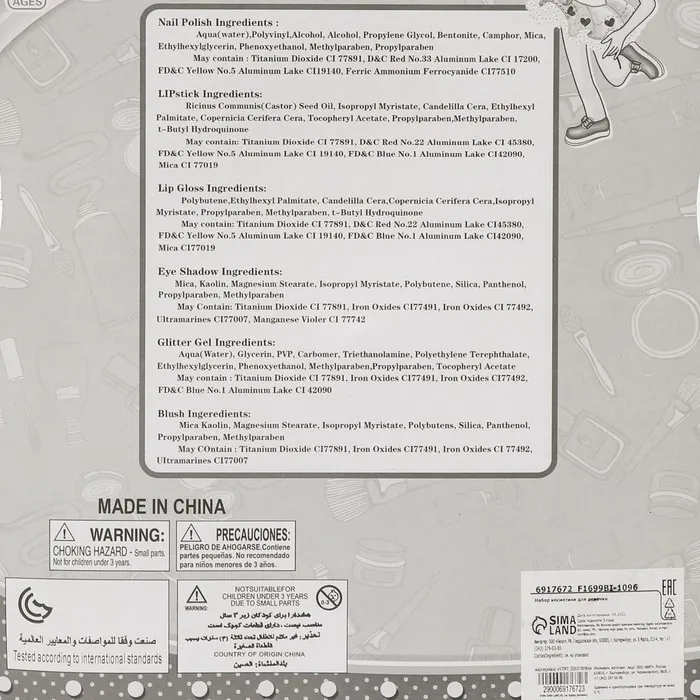 Детская косметика позволит ребёнку устраивать эксперименты со своим стилем. Набор поможет девочке подобрать оптимальные варианты для вечерних и дневных образов. Косметика без труда смывается водой или с помощью ватного диска и безопасна для детской кожи.