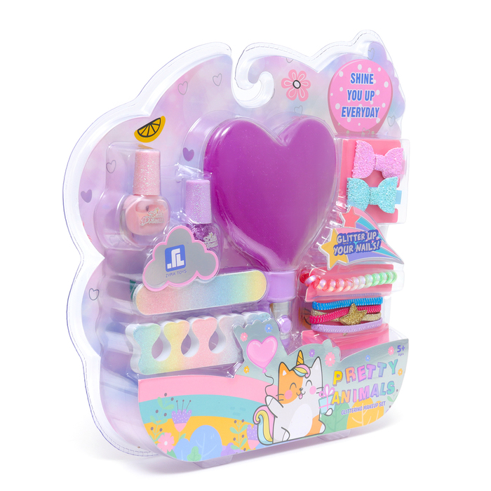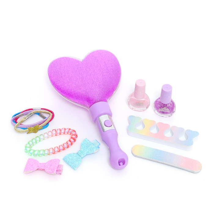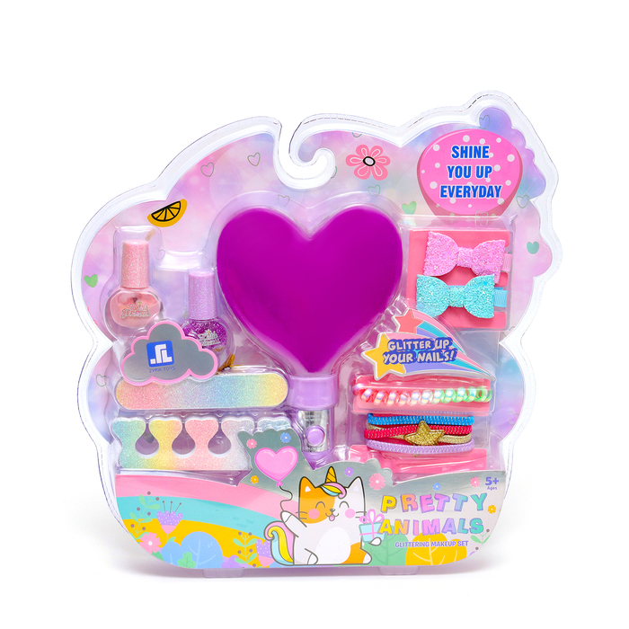 Этот набор с фиолетовым зеркалом в форме сердечка подарит детям радость творчества и ухода за собой, создавая увлекательное пространство для самовыражения и развития фантазии.