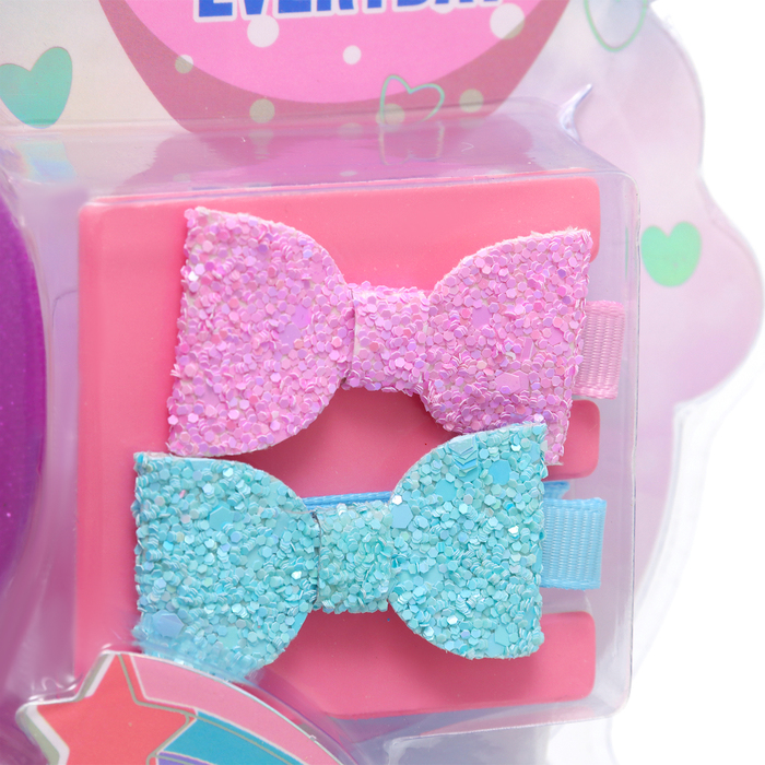 - Резинки для волос (5 шт): Разнообразие резинок, позволяющих детям укладывать волосы в разные прически.