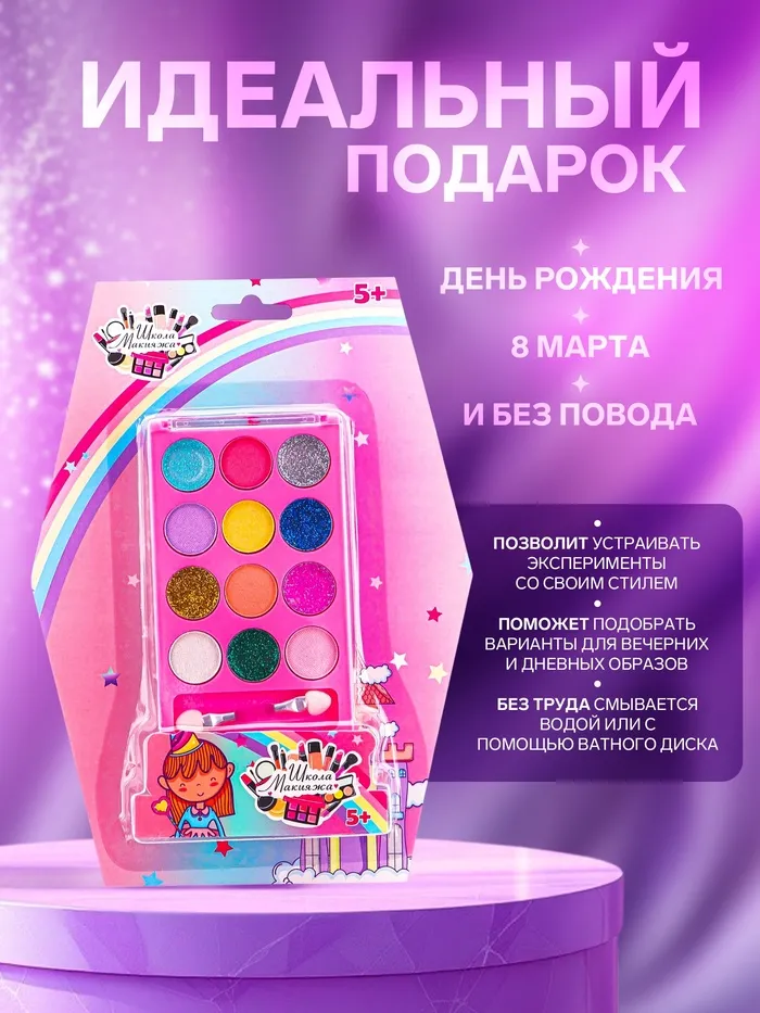 Детская косметика позволит ребёнку устраивать эксперименты со своим стилем. Набор поможет девочке подобрать оптимальные варианты для вечерних и дневных образов. Косметика без труда смывается водой или с помощью ватного диска и безопасна для детской кожи.