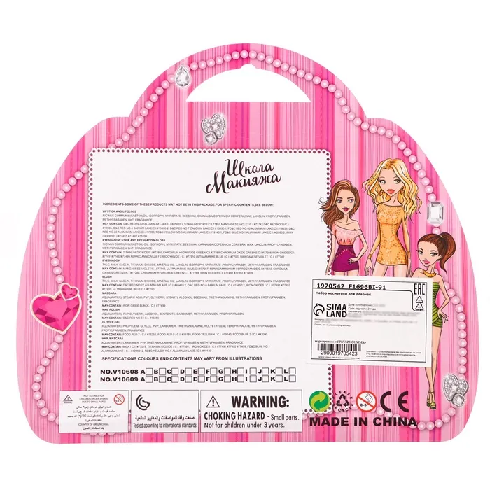 Примечание: Косметика гипоаллергенна и безопасна для детей, легко смывается водой.