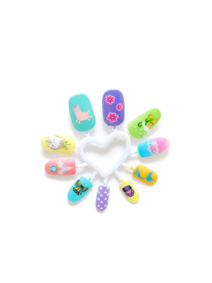 Лак легко наносится и быстро сохнет, создавая красочные и стойкие узоры на ногтях. Наклейки для ногтей дополнят дизайн, придавая ему тот самый волшебный штрих. Накладные ногти добавят дополнительную дозу волшебства, позволяя девочке почувствовать себя настоящей принцессой.