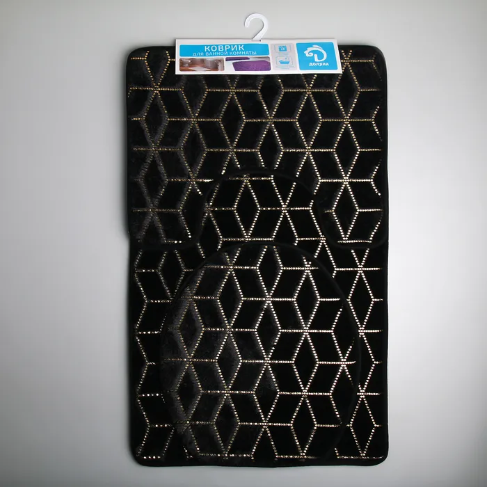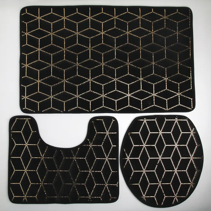 Набор ковриков для ванны и туалета Доляна «Геометрик», 3 шт.: 35×40, 40×50, 50×80 см, чёрный — Характеристики