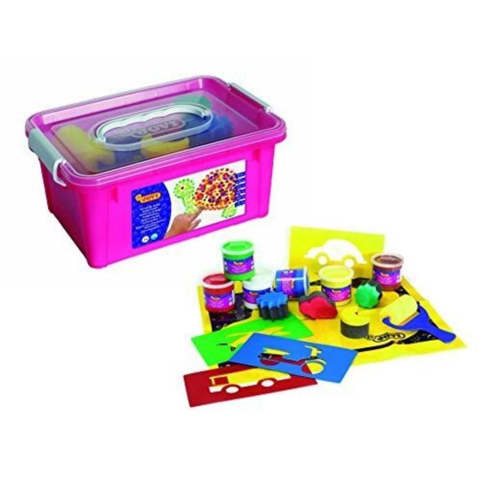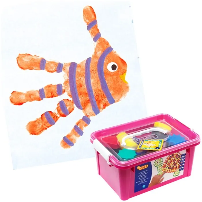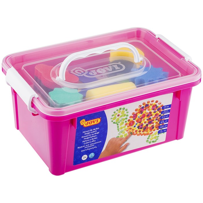 Большой набор красок и аксессуаров JOVI для рисования руками в пластиковом чемоданчике - это настоящий подарок для вашего малыша. Обратите внимание, что товар сертифицирован для детей от 2х лет! Набор составлен специально для первых опытов рисования с учетом возможностей ребенка раннего возраста и включает в себя: