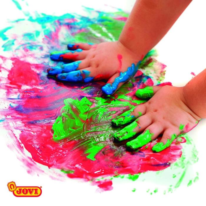 Пальчиковые краски очень удобны для маленьких детей, ведь рисовать ладошкой намного интереснее, чем кисточкой! Густая текстура пальчиковых красок JOVI вызывает огромный интерес у малышей. Их так приятно растирать и смешивать прямо в руках. Многие родители недооценивают пользу красок для рисования руками, а зря! Рисование пальчиковыми красками способствует развитию моторики, координации движений.