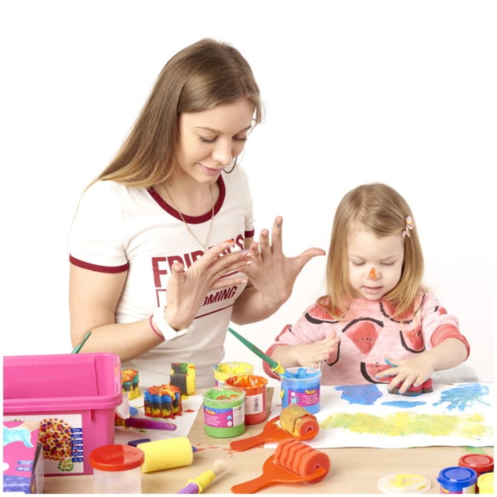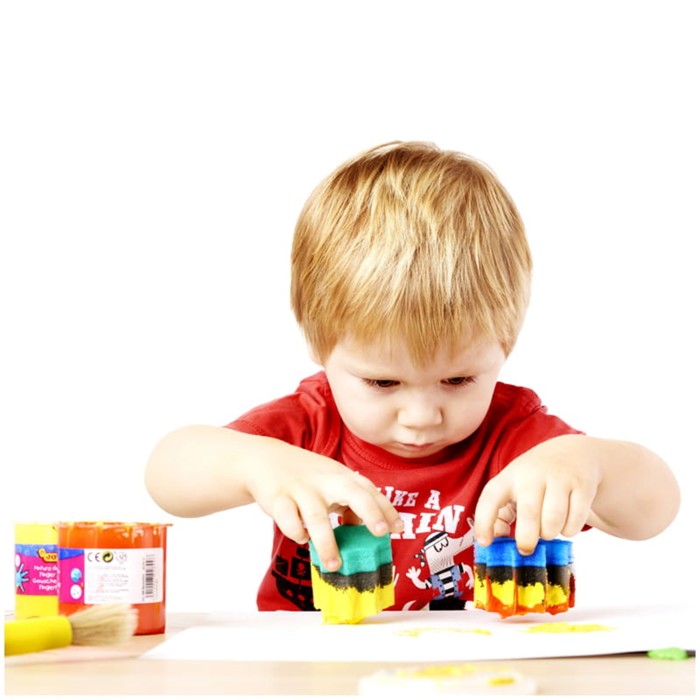 Последствия бурной творческой деятельности тоже будут минимальными - краски на водной основе, поэтому легко смываются с рук ребенка теплой водой. А для удаления краски с одежды подойдет обычный режим стирки при самой низкой температуре и без применения каких-либо пятновыводителей.