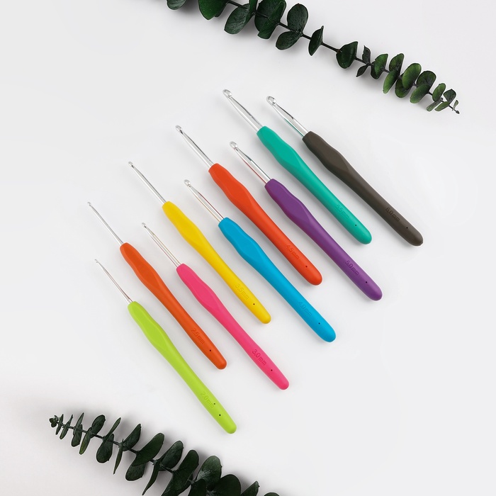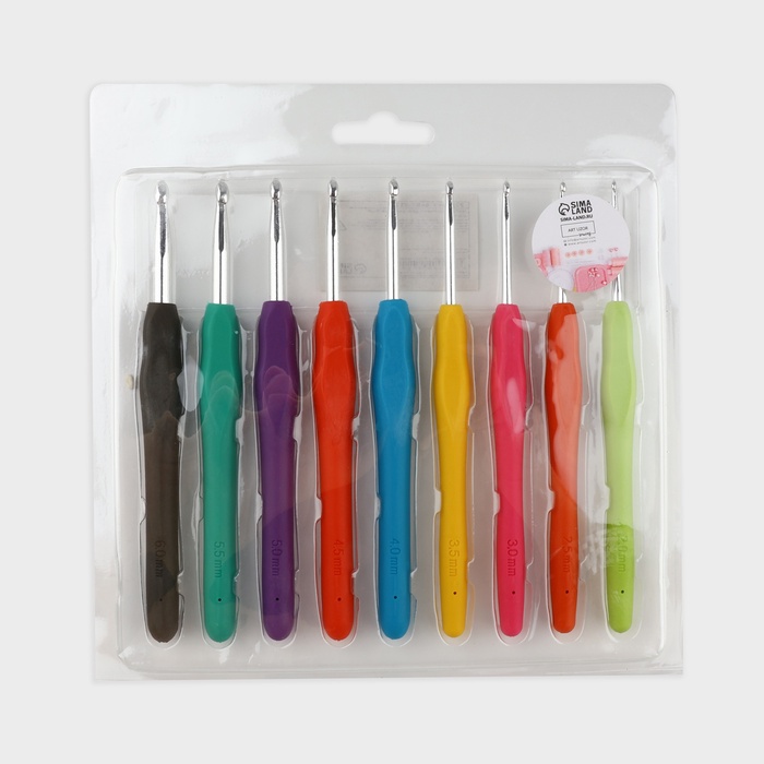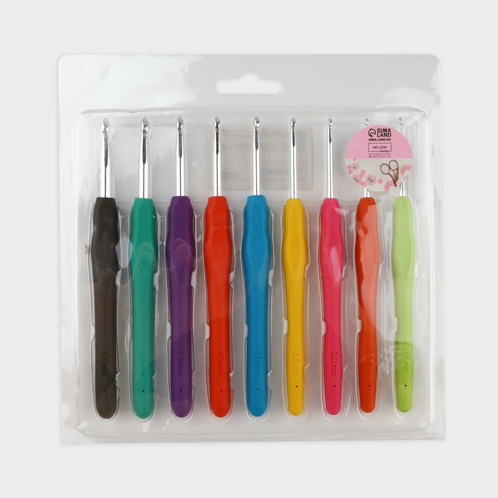Набор крючков для вязания, d = 2-6 мм, 14 см, 9 шт, цвет разноцветный — Характеристики