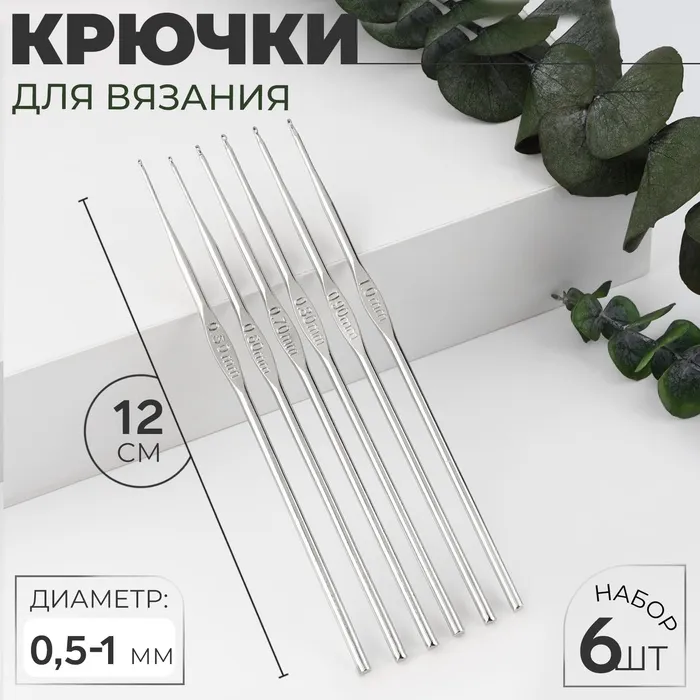 Набор крючков для вязания, d=0.5-1 мм, 12 см, 6 шт. — Характеристики