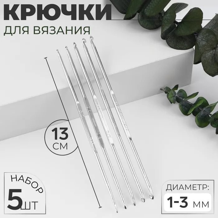 Набор крючков для вязания, d=1-3 мм, 13 см, 5 шт. — Характеристики