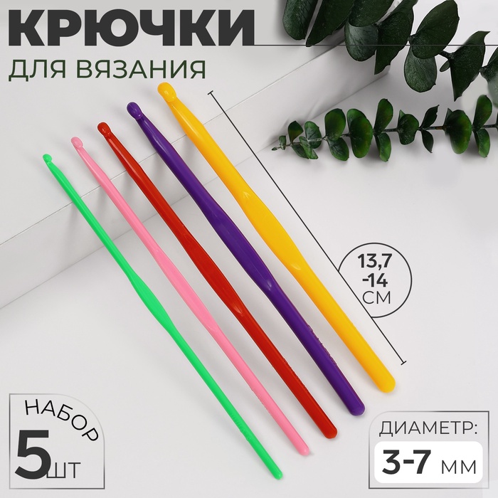 Набор крючков для вязания, d=3-7 мм, 13.7-14 см, 5 шт., разноцветный — Характеристики