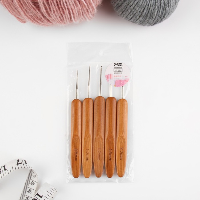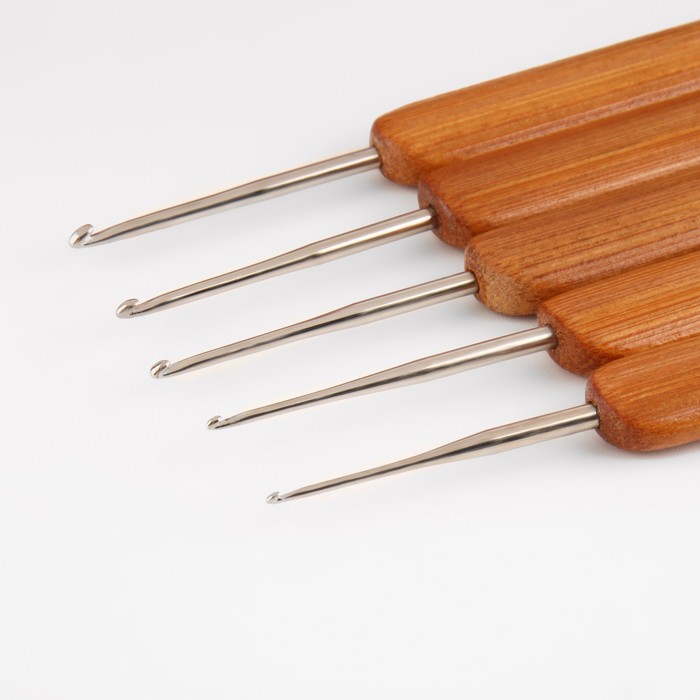 Набор крючков для вязания, с бамбуковыми ручками, d=0.75/1/1.25/1.5/2 мм, 13.5 см, 5 шт.