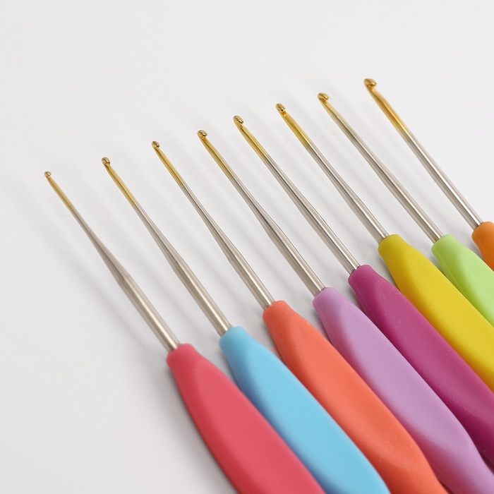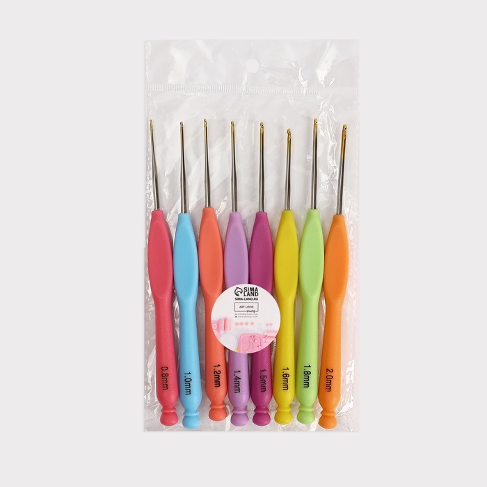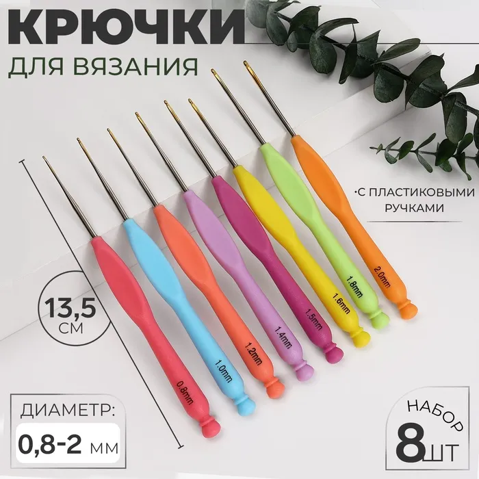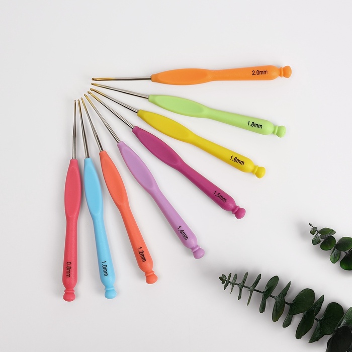 Набор крючков для вязания, с пластиковой ручкой, d = 0,8-2 мм, 8 шт, цвет разноцветный — Характеристики