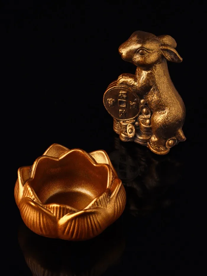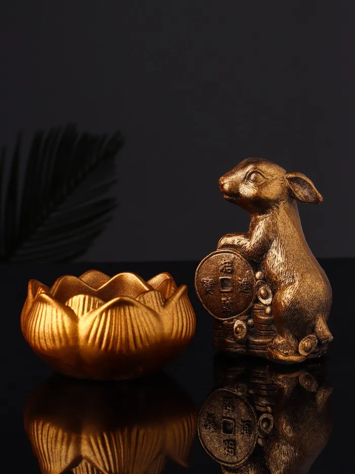 Набор "Кролик фен-шуй с подсвечником", 12х20 см, бронза