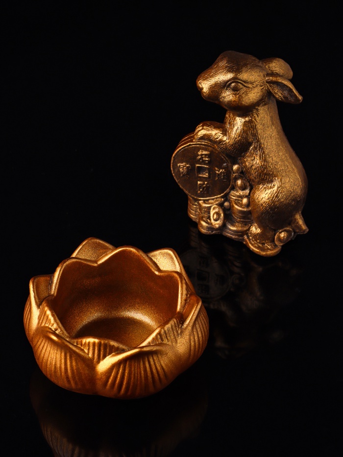 Набор "Кролик фен-шуй с подсвечником", 12х20 см, бронза — Характеристики