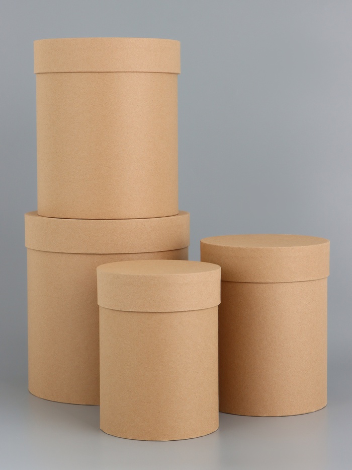 Набор круглых коробок 4в1 "Крафт однотонный", 24 х 24 х 24 - 15 х 15 х 20 см
