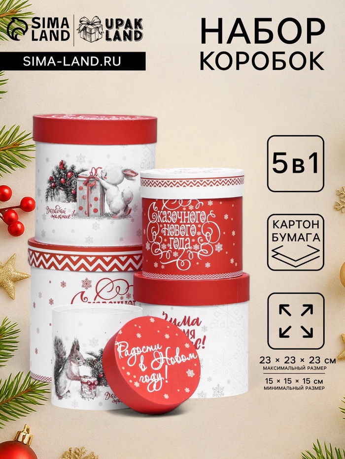 Набор круглых коробок 5 в 1, 20 × 20 × 20 - 14×14×14 см МИКС — Характеристики