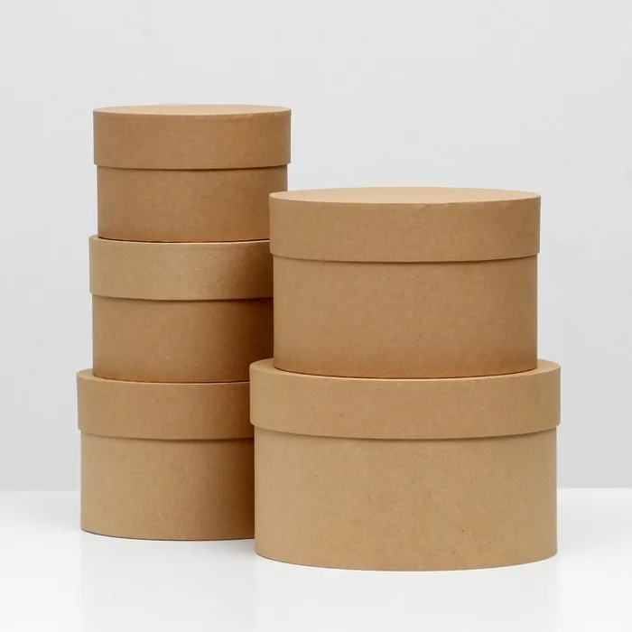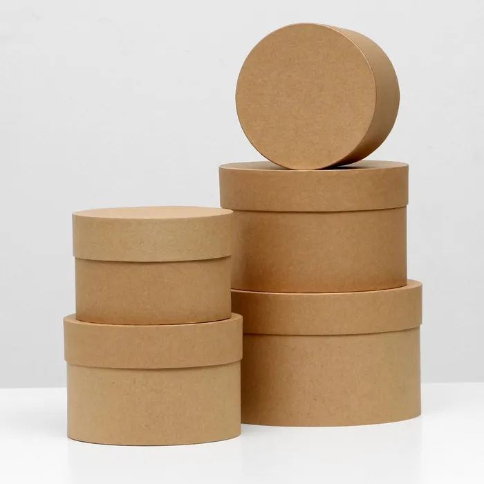 Набор круглых коробок 5 в 1 «Крафт однотонный», 23×23×14 - 15×15×10 см — Характеристики