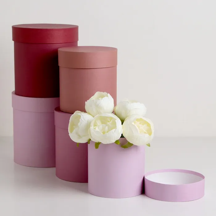 Набор круглых подарочных коробок 5 в 1 «Кофе с молоком», 20×20 ‒ 14×14 см — Характеристики
