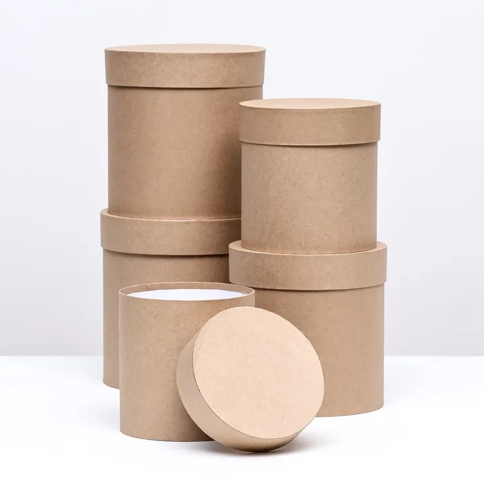 Набор круглых подарочных коробок 5 в 1 «Крафт однотонный», 20×20 - 11×11 см — Характеристики